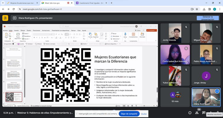 Webinars interactivos acerca de igualdad de género, empoderamiento y prevención de la violencia. Enfoque constructivista, uso de metodologías activas y herramientas digitales que permiten la participación activa de los estudiantes.